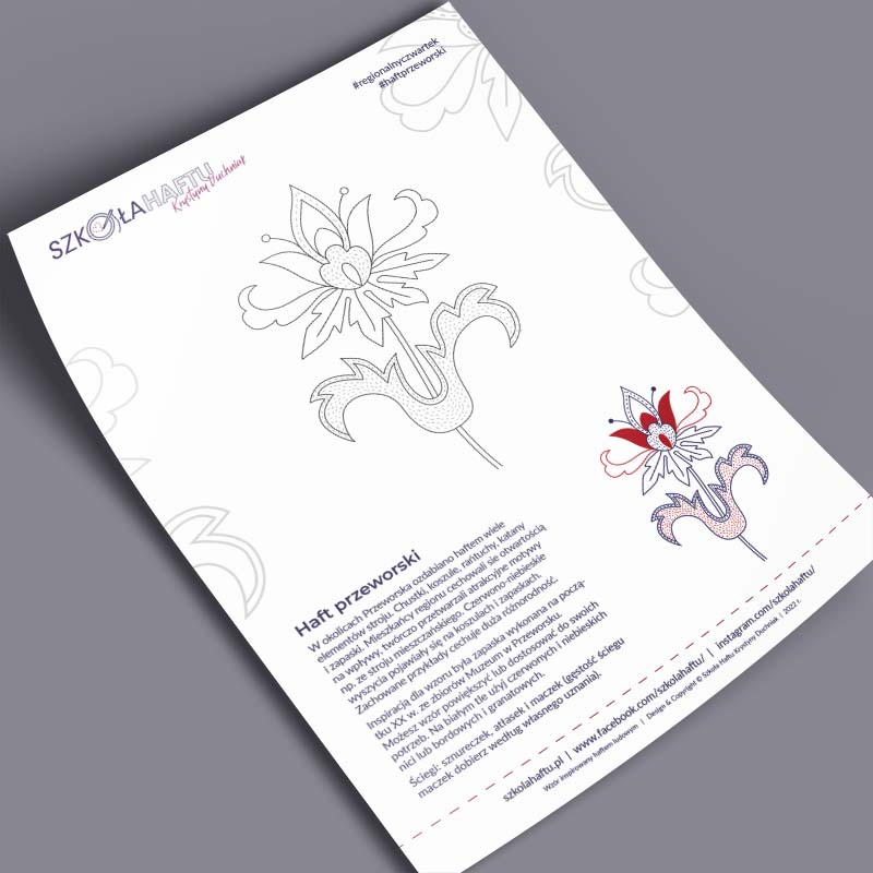 Wzory do haftu inspirowane przeworskimi motywami regionalnymi. 2 pliki pdf na 2 stronach do samodzielnego wydrukowania.
